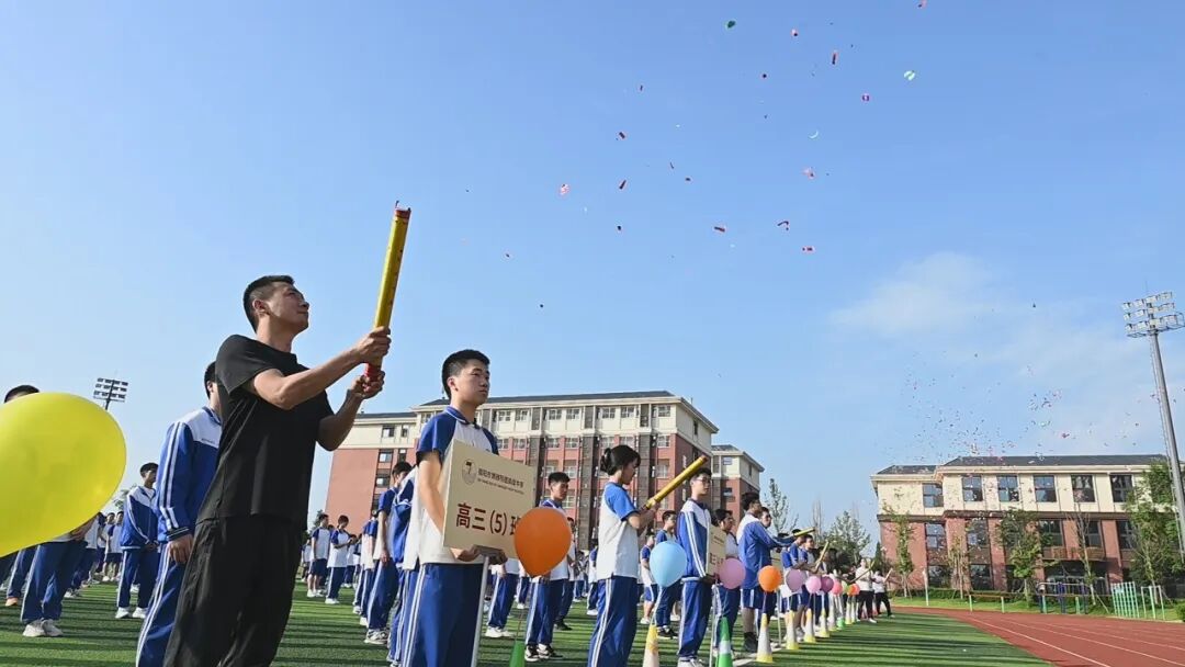 礼炮鸣,启新程。在一声声震耳欲聋的鸣炮声中,开学典礼圆满结束。礼花在空中绽放,象征着新的学年充满希望和无限可能。